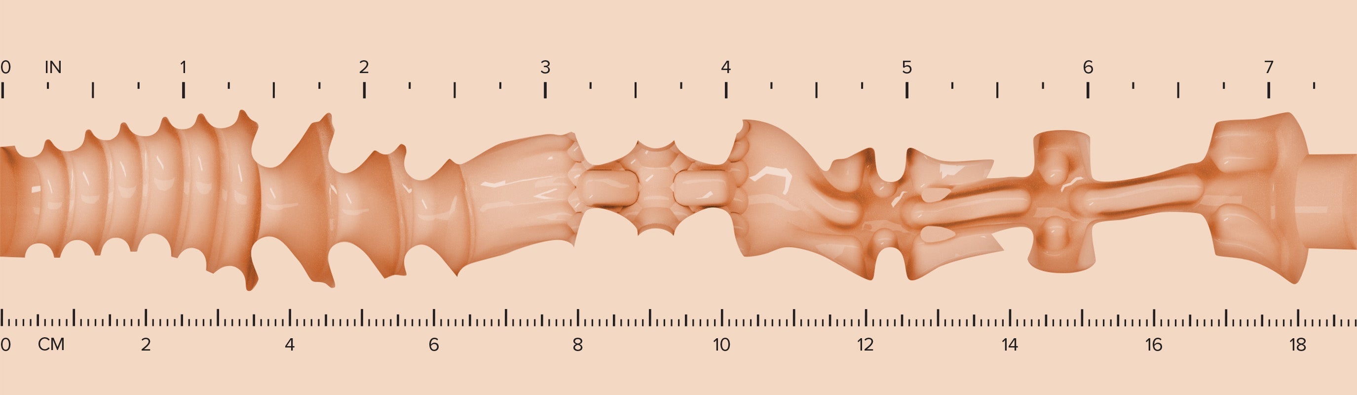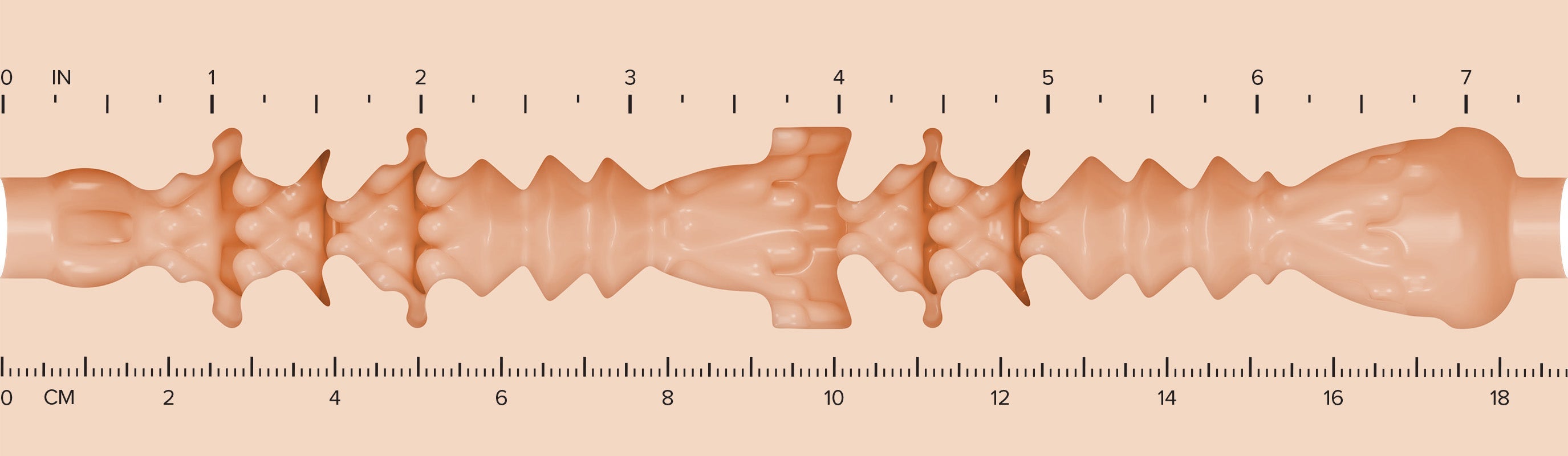 Vanna Bardot's Oxytocin texture features curvier, deeper shaping and gradual compression zones that wrap the shaft in a firm yet inviting embrace. Rounded valleys and gentle arcs maintain contact throughout, offering a rich, enveloping sensation that stays lively through every movement.